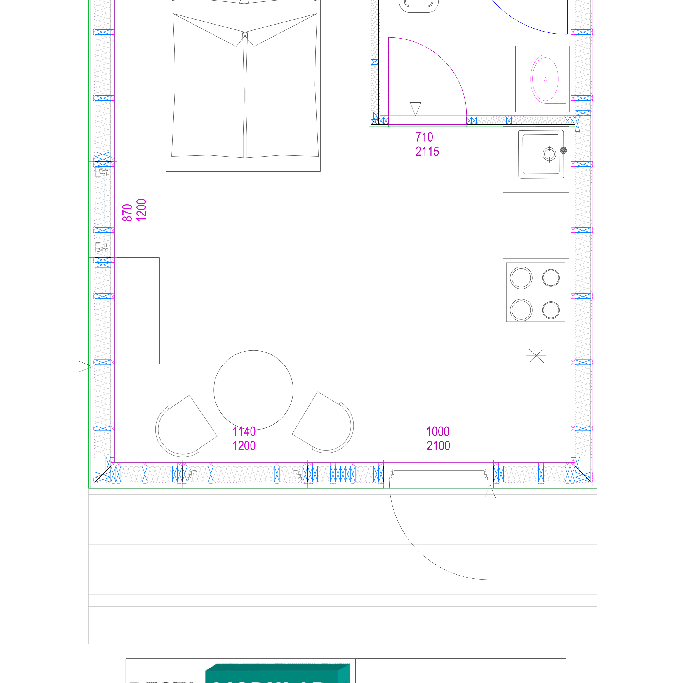 - Pilnai įrengtas vonios kambarys, bendra gyvenamoji ir miegamojo erdvė