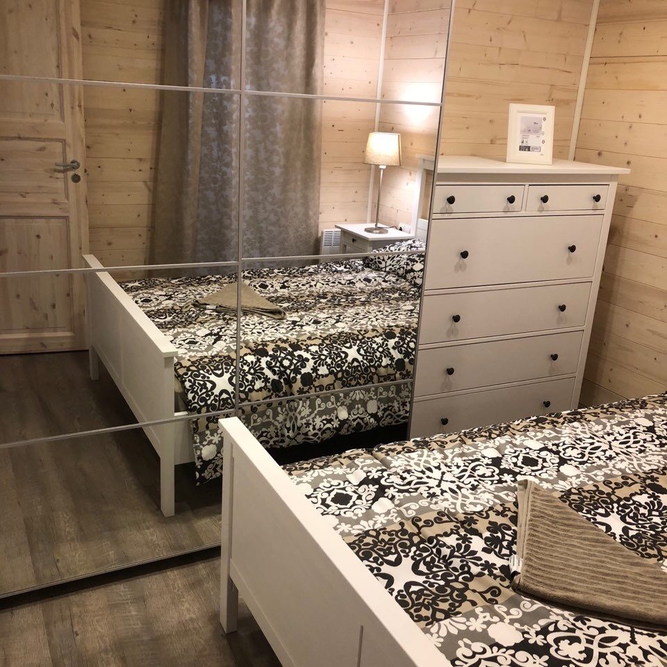 - Pilnai įrengtas vonios kambarys, erdvi poilsio zona, du atskiri miegamieji.