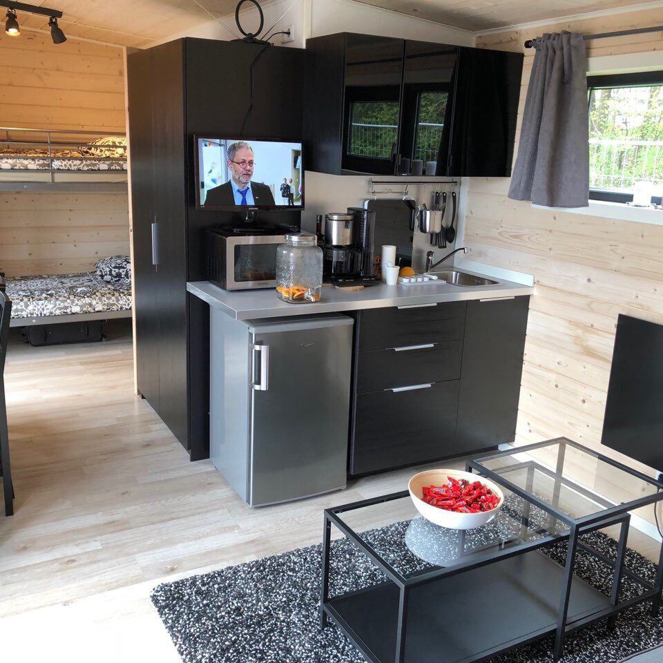 Šis išskirtinis 35 kvadratinių metrų modulinis namelis su terasa žavi ne tik savo funkcionalumu, bet ir elegantišku dizainu. Tai puikus pasirinkimas tiems, kas vertina ergonomiškus sprendimus ir optimaliai išnaudotas erdves. Namelyje įrengta gyvenamoji ir virtuvės zona, vonios kambarys, du atskiri miegamieji kambariai.
