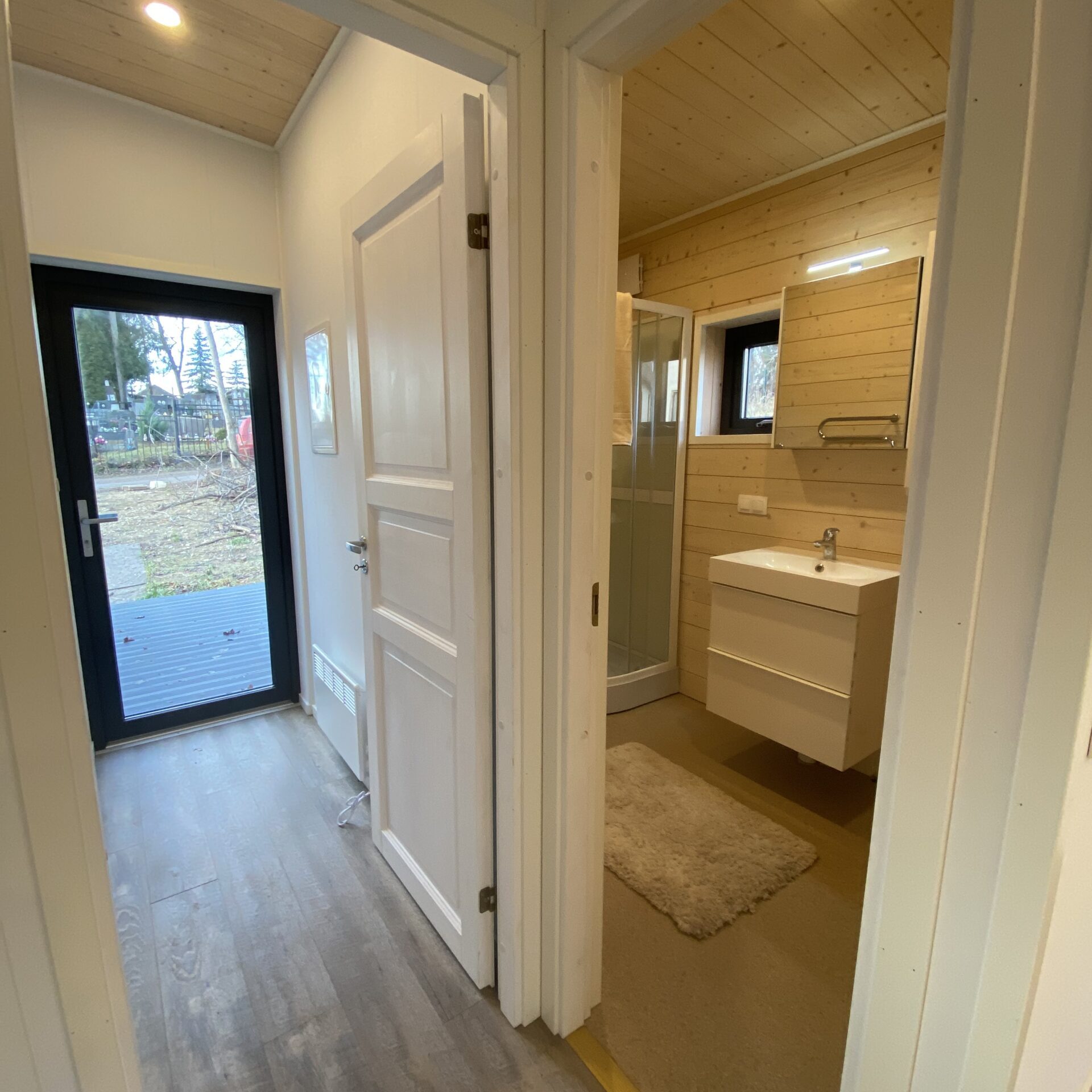 Šiame moduliniame name suprojektuoti trys miegamieji, erdvi gyvenamoji erdvė sujungta su virtuve. Dvi terasos, dideli langai suteikia šviesos ir jaukumo Jūsų namams. Šis modulinis namas pritaikytas gyventi ir šaltuoju metų laiku. Modernus sprendimas užtikrinantis funkcionalumą, jaukumą ir šeimos narių privatumą.